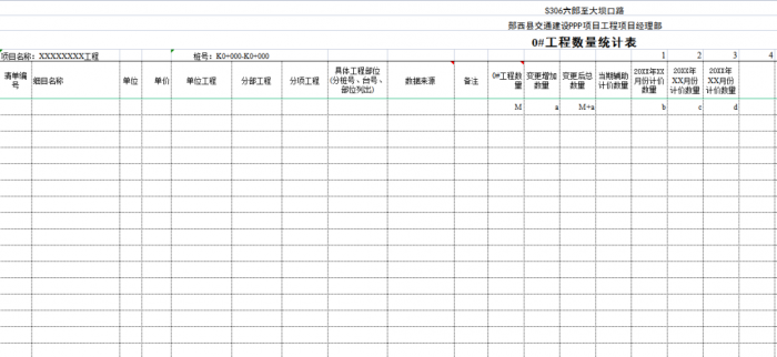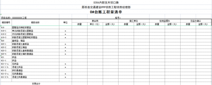 “0#”臺賬按單位、分部、分項工程劃分標(biāo)準(zhǔn)編制,可以將計量支付與質(zhì)量檢驗評定有機結(jié)合起來,這樣可以使質(zhì)檢、測量、實驗、計量等部門的內(nèi)業(yè)工作都在同一個規(guī)則下進行,提高了整個項目(合同段)內(nèi)業(yè)管理的效率。