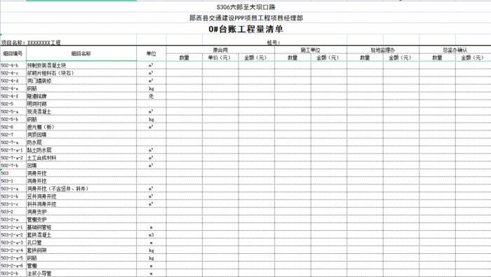 在闡述“0#”臺賬對公路工程項目管理的作用之前,有必要先對“0#”臺賬的含義進行說明,目前在我國行業(yè)的相關(guān)規(guī)范中,并無“0#”臺賬的專業(yè)術(shù)語和定義,每一個項目都可以根據(jù)自身的項目管理特點對其進行定義。所謂“0#”是根據(jù)時間的先后順序來說的,初始的臺賬叫“0#”臺賬,進入實施階段后,根據(jù)設(shè)計變更,還可能會有“0-1#”“0-2#”“1#”等臺賬,不同項目各有不同。