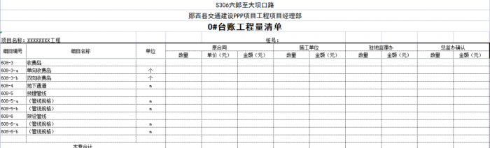子目號、子目名稱、單位、工程數(shù)量及合價是設(shè)計圖紙規(guī)模的一種反映形式,是“0#”臺賬與工程量清單相互聯(lián)系的紐帶,也是圖紙工程數(shù)量向“0#”臺賬工程數(shù)量轉(zhuǎn)換的根本,尤其是子目號,它的準(zhǔn)確性直接影響了“0#”臺賬的質(zhì)量。